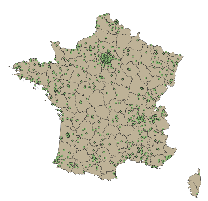 Carte des passages à niveau sans barrières et avec difficultés d'affranchissement